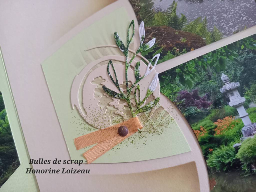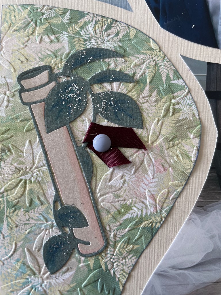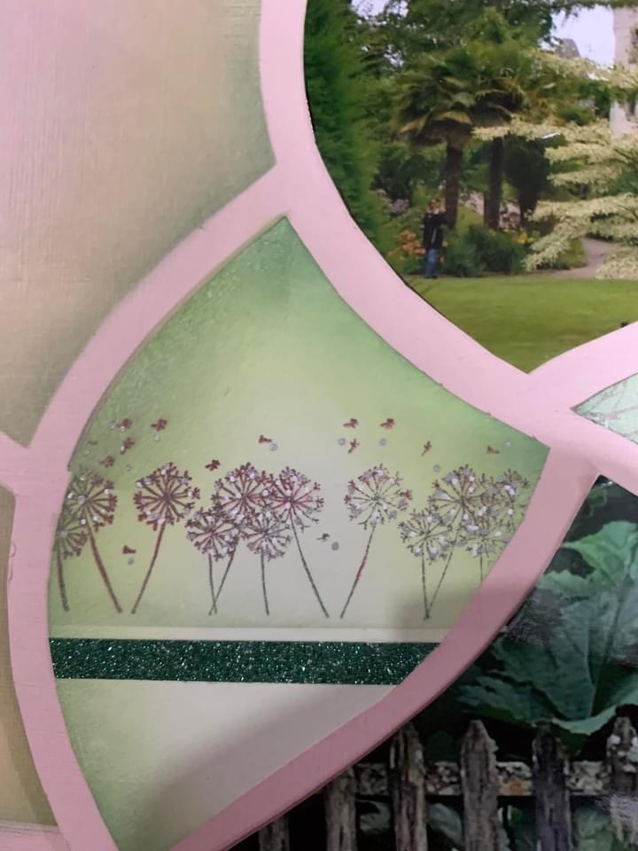 Sophie’s decoration is beautiful incorporating a stamped image, die cut, Dried Flowers sticker and the Title letters for her heading.