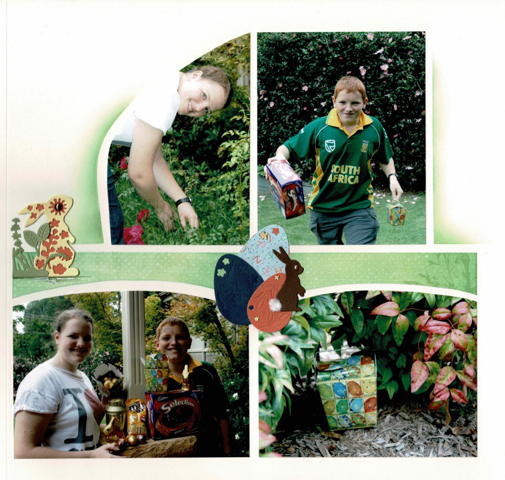 On the page below I used the Alphabet stencil above for my title. I used the Bunnies both as the bunny itself, but I also used the ‘negative’ die cut to add the bunny shadows to my patterned paper. The Easter eggs are also fun, I chose to keep them in one colour on this layout, but colours can be added within the patterns on the egg. I used this method in the layout above, only choosing to use the little stars as I didn’t want it to stand out too brightly in the decoration.