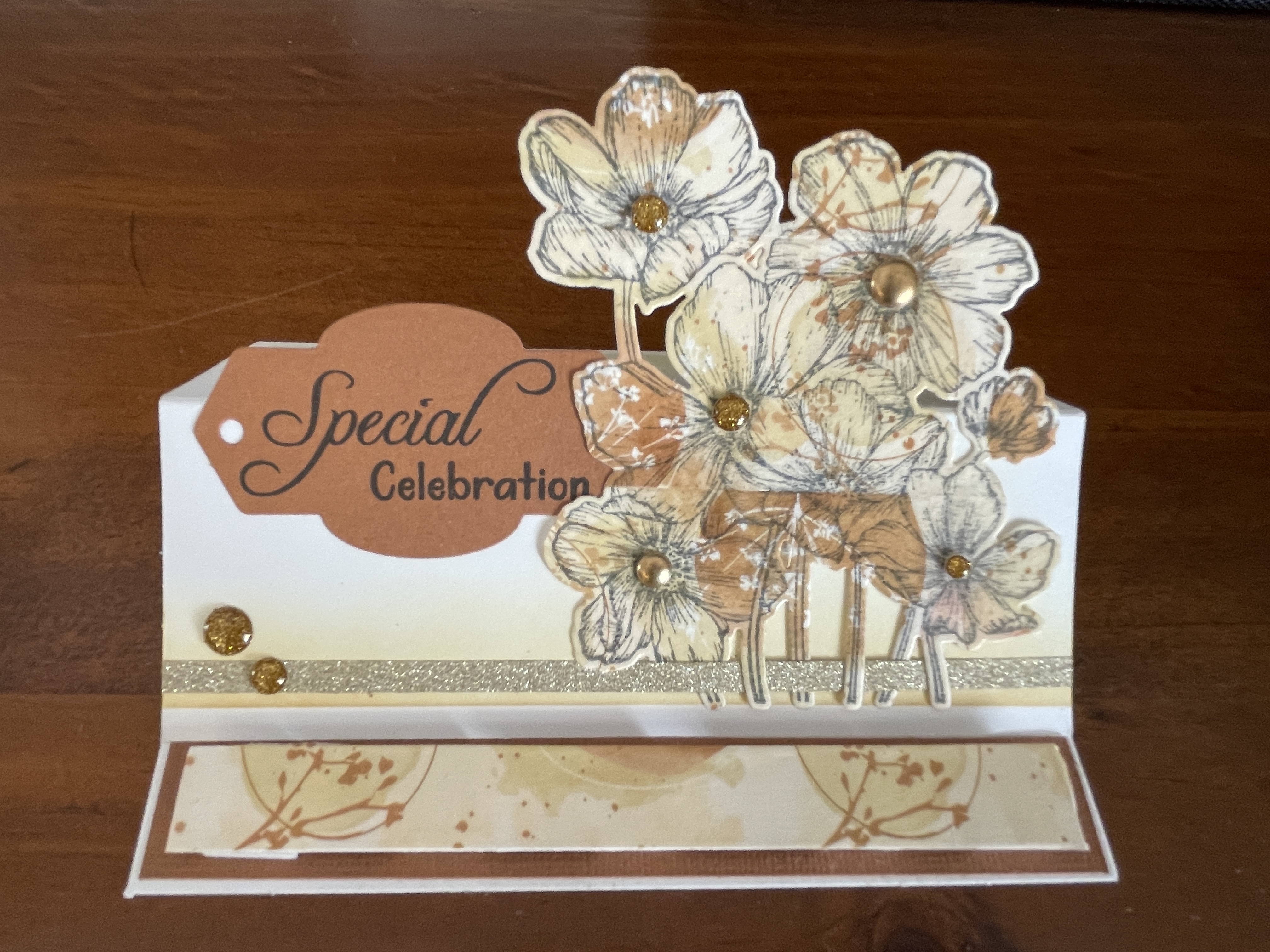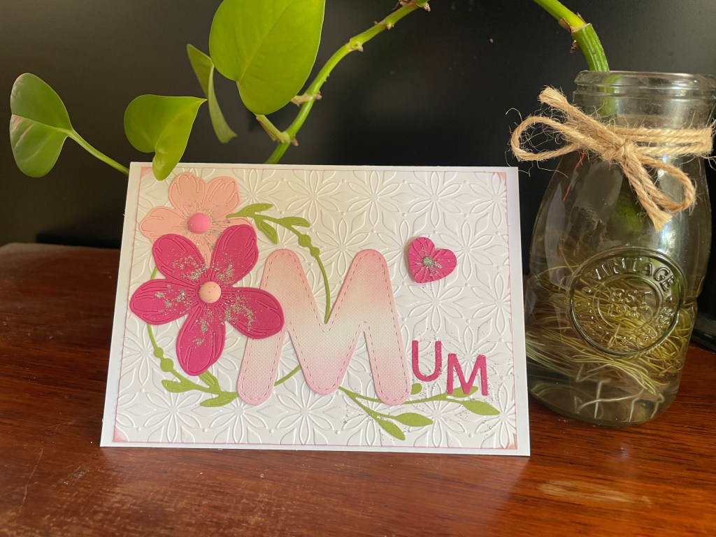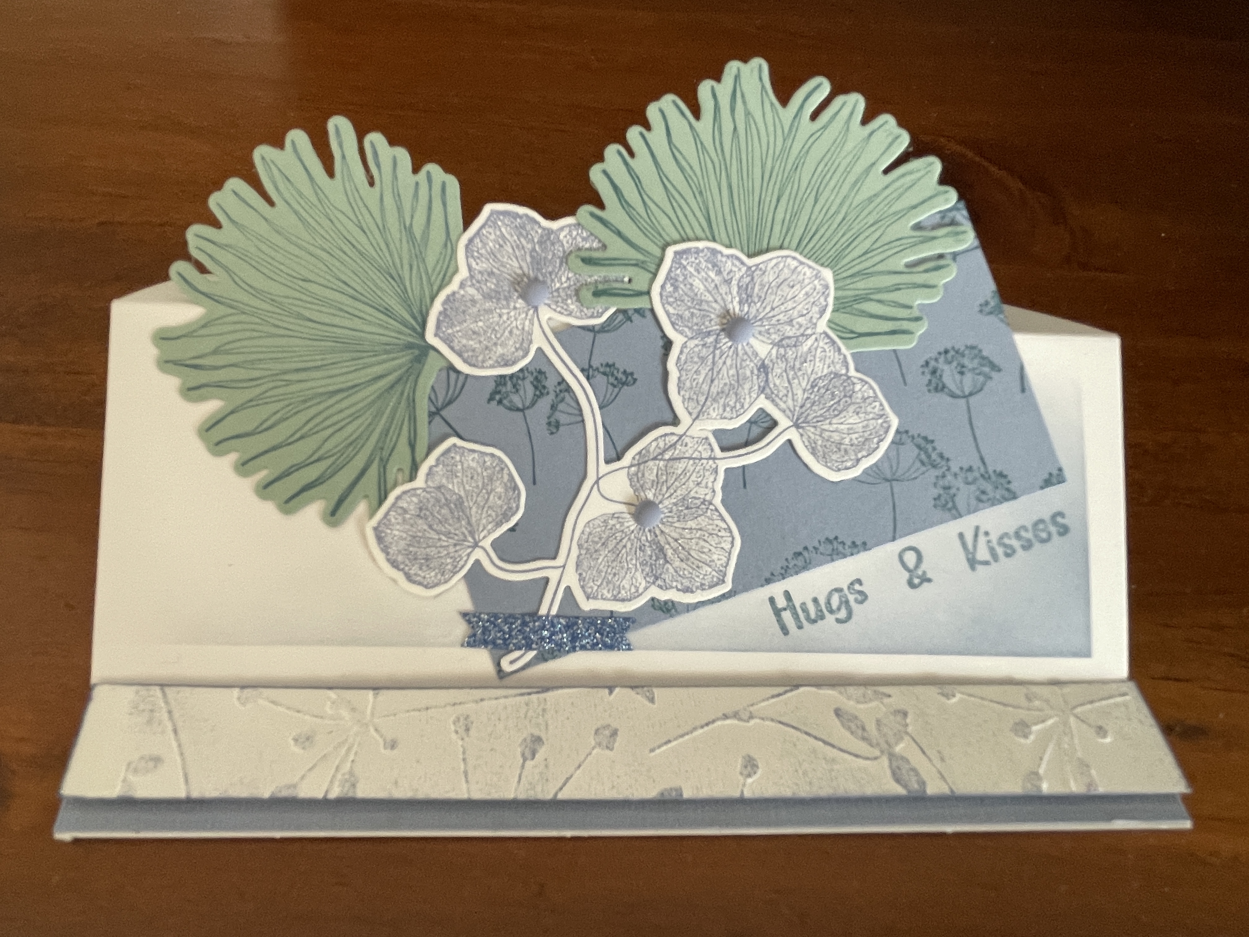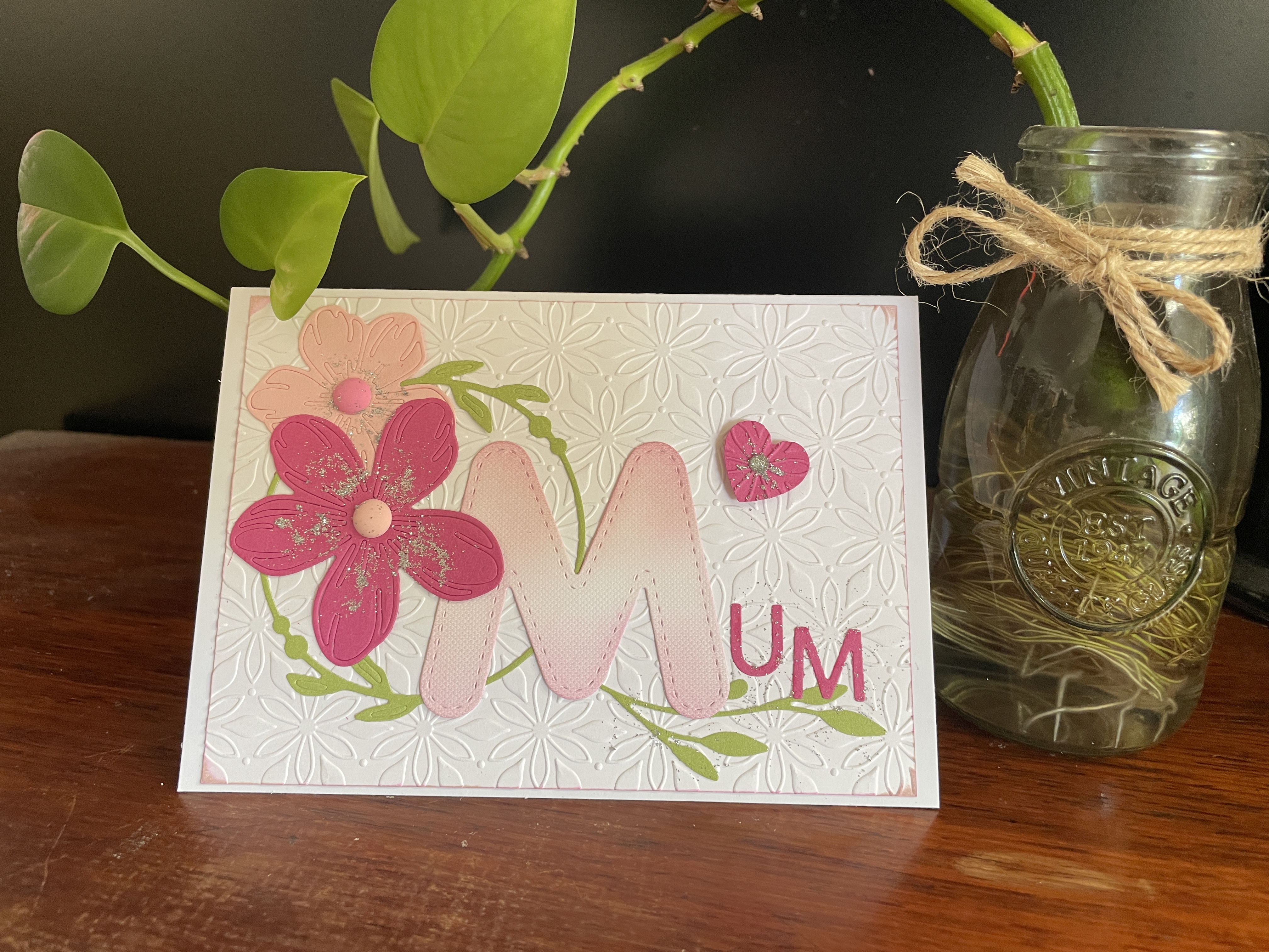 I created the card below for a class based on an AZZA instruction. I used the stamp and die set and the embossing folder. The strip of embossing is raised with 3D mousse (Foam) to keep the card standing up. The small words are part of a Sentiment stamp available in our online shop: azzaworld.com.au
