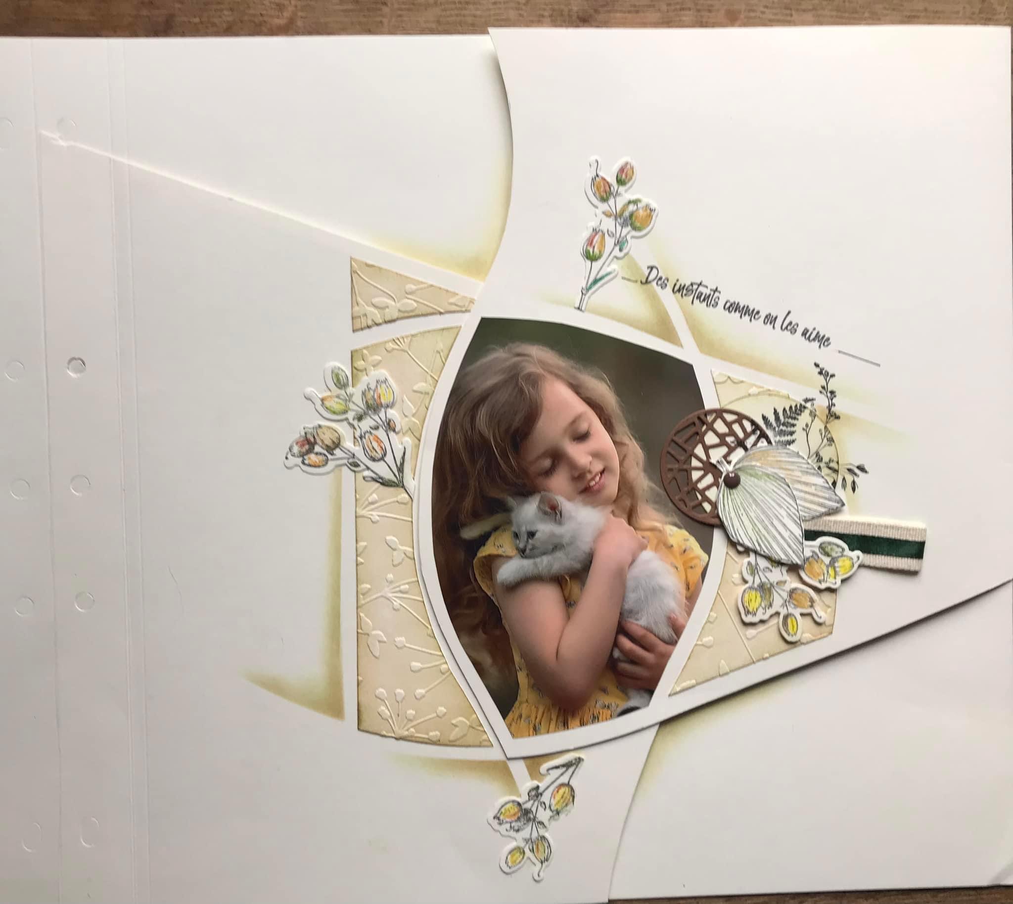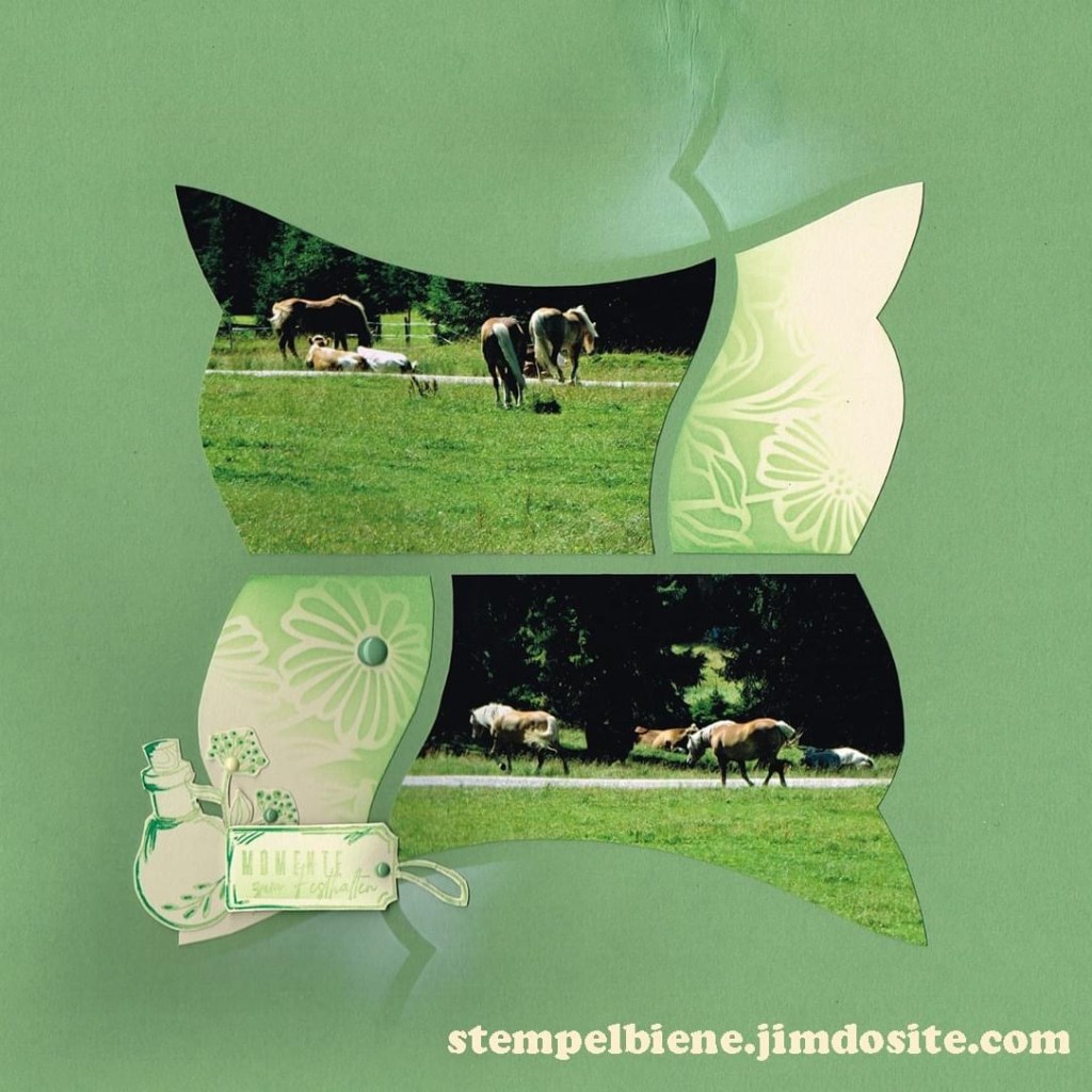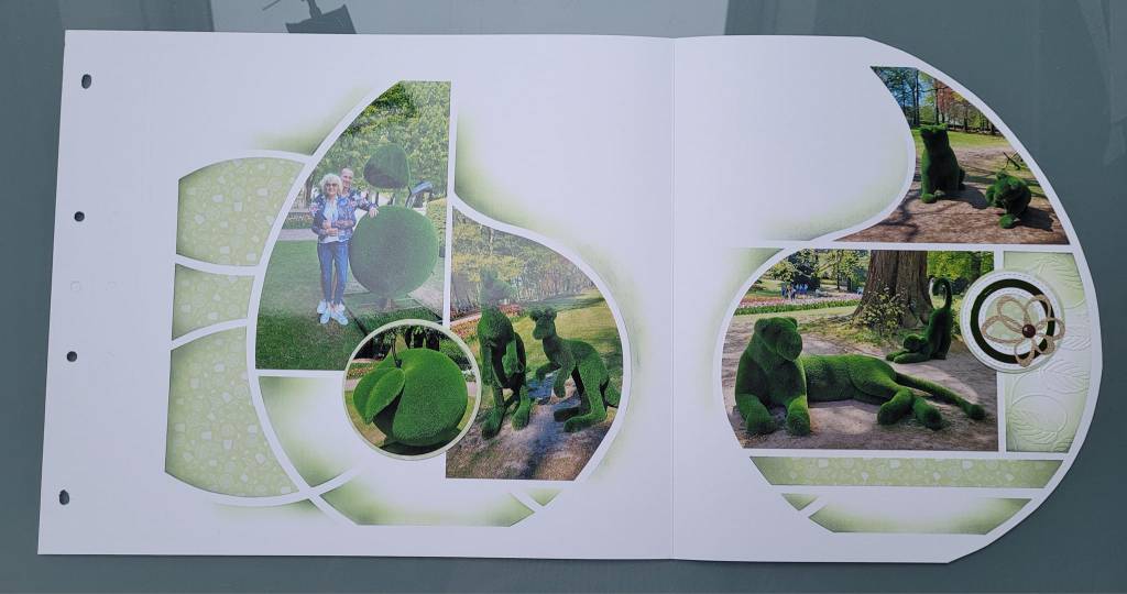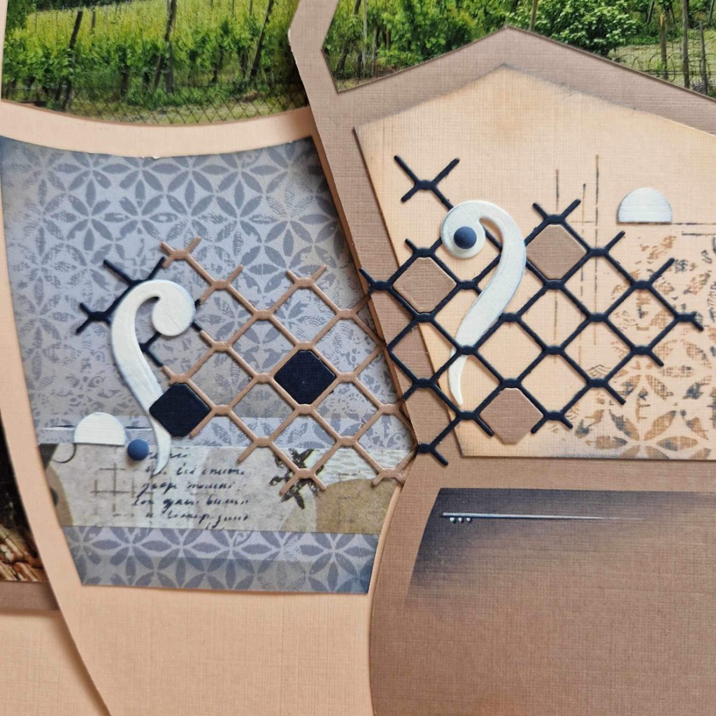 If you are interested in learning about interactive pages, contact your AZZA Consultant or contact me and I can put you in touch with someone in your area. If there is not a Consultant in your area, we have a few Consultants that run online classes. Pages can also flip vertically, below a lovely layout by AZZA Europe using the AZZA Die Country Outing: DIE 297.