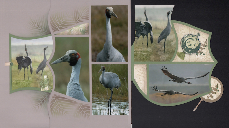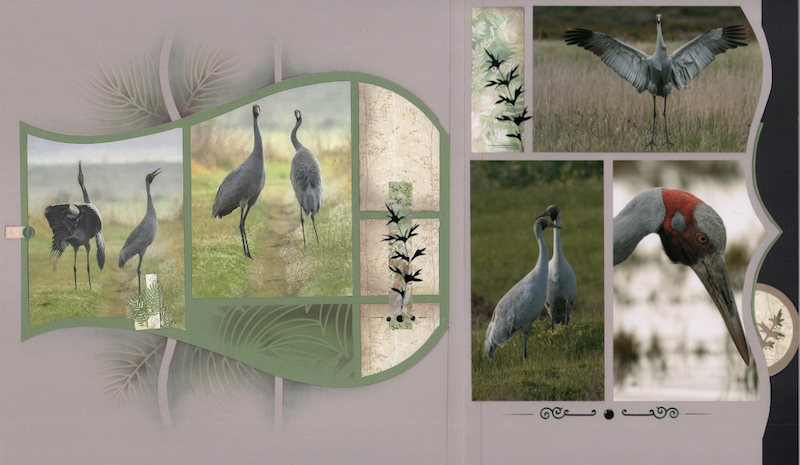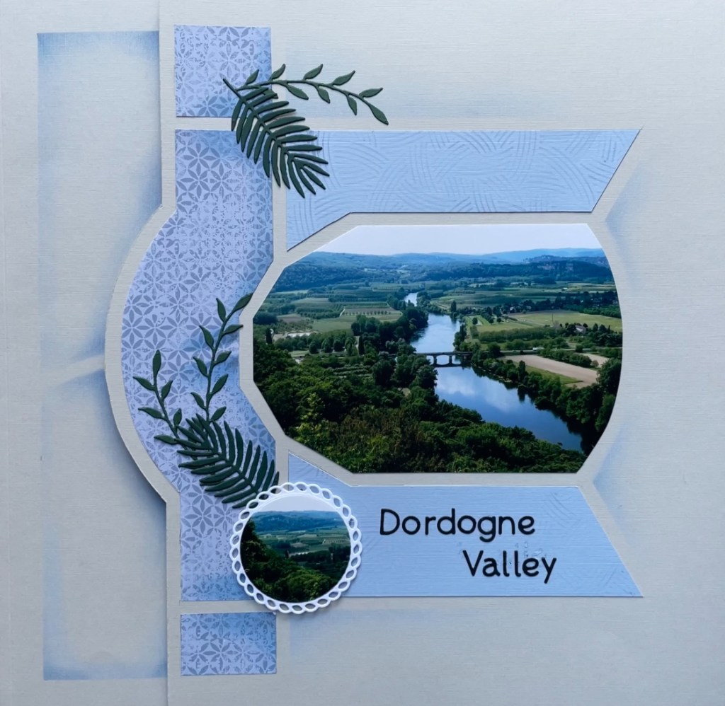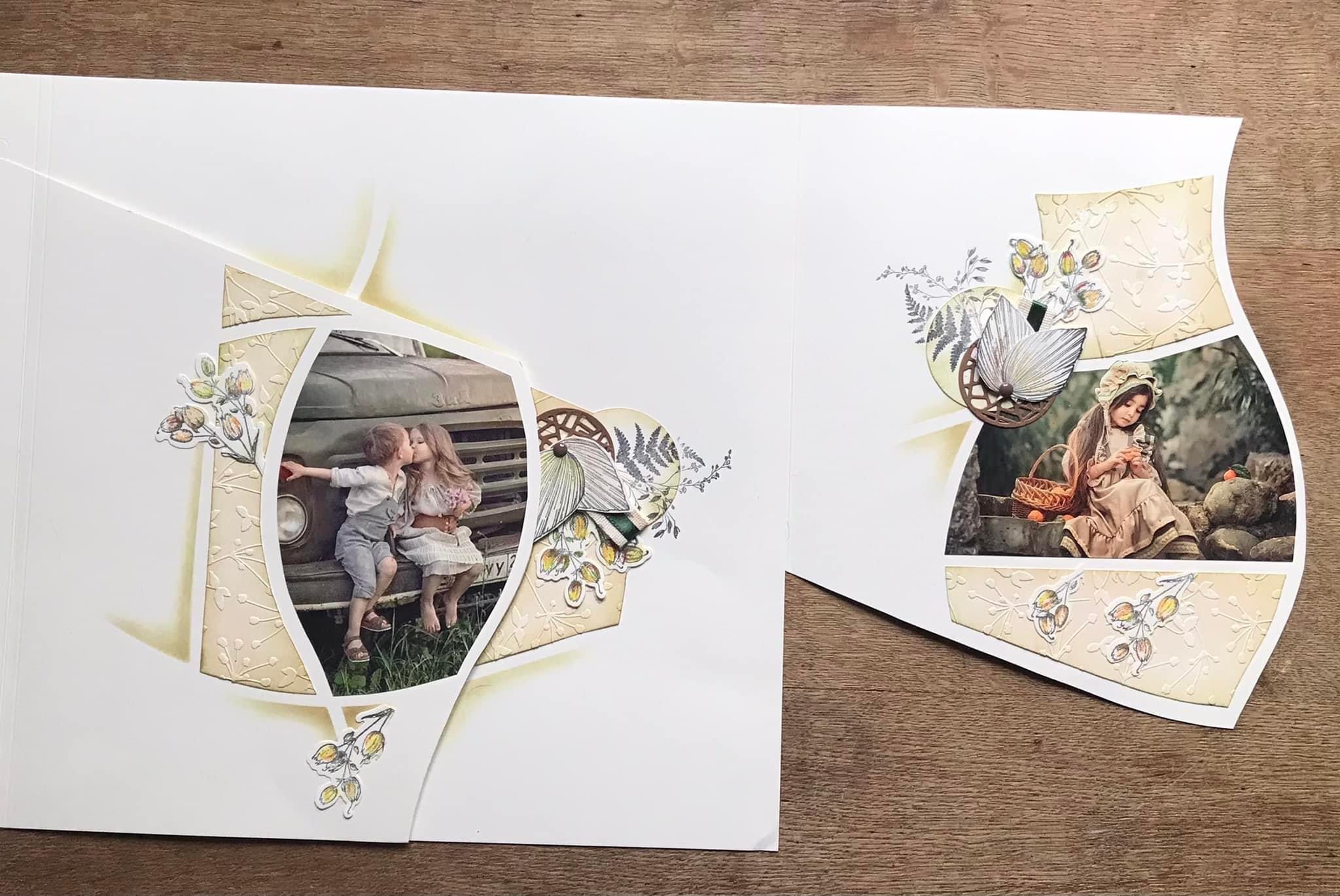 If you are interested in learning about interactive pages, contact your AZZA Consultant or contact me and I can put you in touch with someone in your area. If there is not a Consultant in your area, we have a few Consultants that run online classes. Pages can also flip vertically, below a lovely layout by AZZA Europe using the AZZA Die Country Outing: DIE 297.