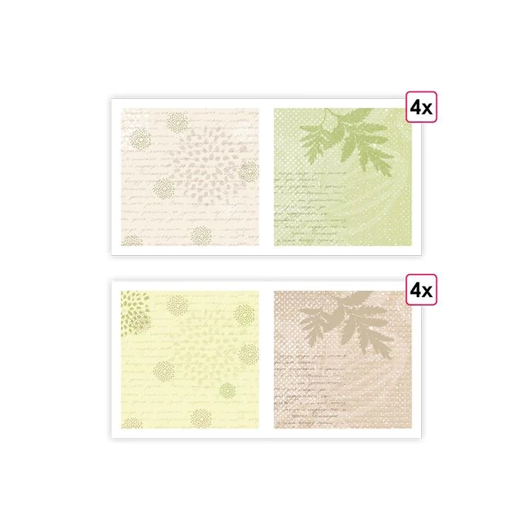 The patterned paper I used is perfect for any theme on the page and comes in both the green and beige shades so can be used with almost any photos: PAP 0241. Remember the shades of the colours on the page can be altered with a little AZZA inking. These papers have also been used on the pages below.
