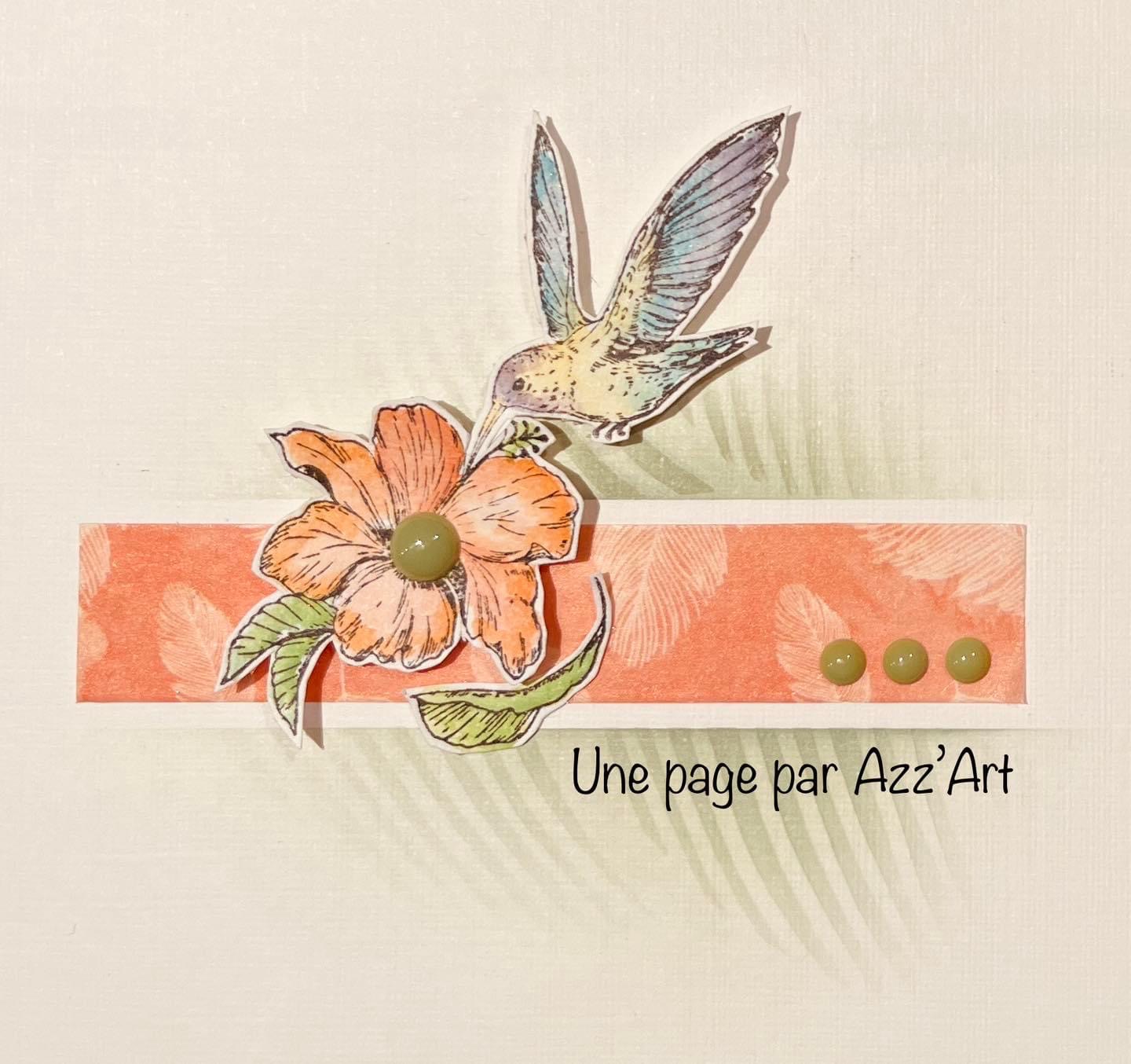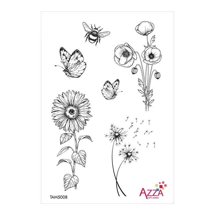 This lovely little AZZA stamp is very versatile for both the scrapping page and cards. The bees and butterflies can fill spaces and used with a little trail as Heather did so well on her page above. Inks, chalks and the Aqua pen can be used on all these images. Samples below for a little inspiration from AZZA Consultants in Europe.