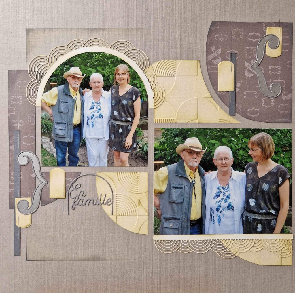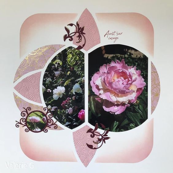 Today I came across a beautiful double page on Facebook created by Lucienne Leclercq and just had to include it in my blog. It is such an elegant page. Lucienne has used a single page that sits inside a 30 x 60 (double) AZZA page. This layout was based on a model by Laurence Chabbey.