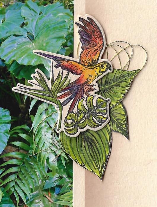 Below Sue Talbot in New South Wales shows how both the stamps and dies can be used as decoration to match the birds in the photos.