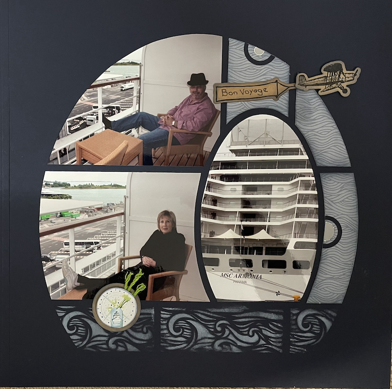 Barb Rae in Western Australia created the layout below with the Murano set using the AZZA Shadows decoration themed products. Note how she has used the Shadows embossing folder with velum as a background for her decorations.
