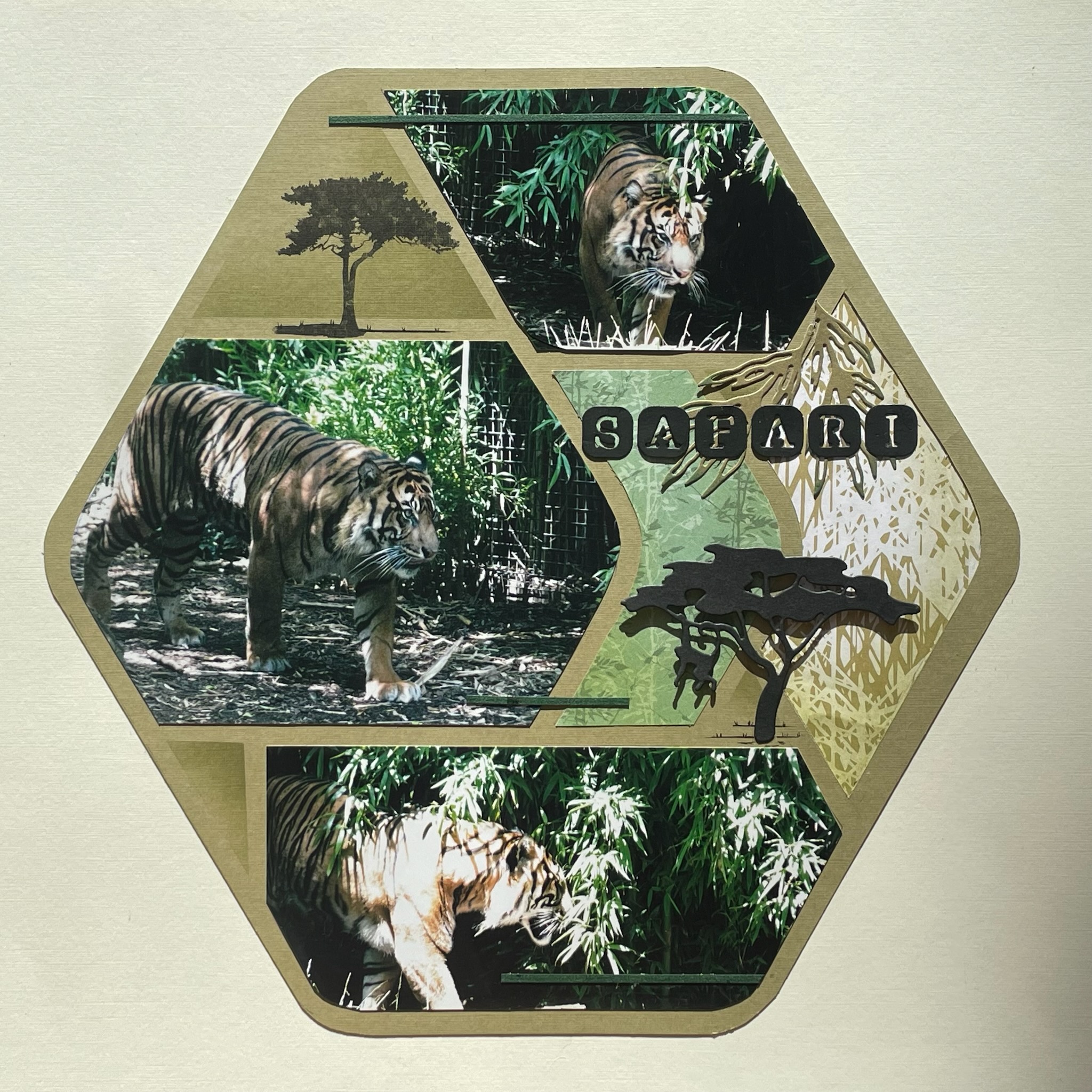As with any of the AZZA stencils a single enlargement can also be easily used with these stencils. What I wanted to show below is the importance of the colour papers you use. The colour paper will bring out specific colours in the photos used. Always place them on the page with your photos to see they enhance the photo and pop the colour of your choice. (Not cut as below, just the sheet of paper)