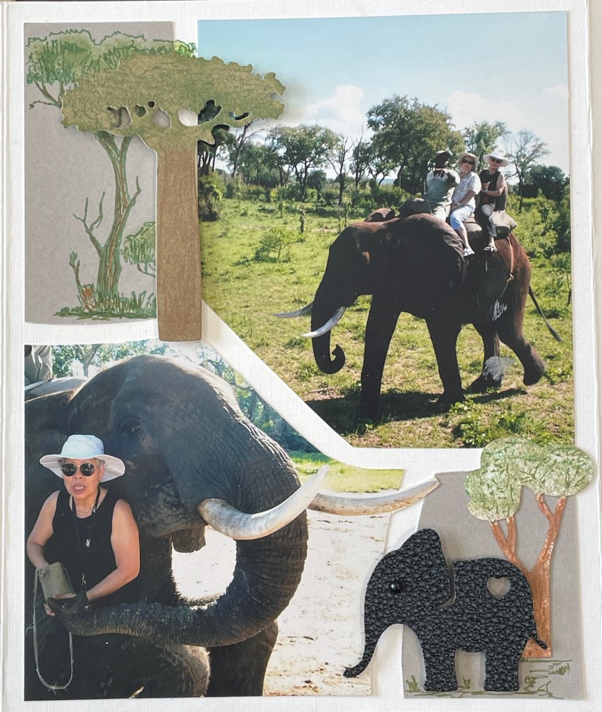Sue’s second page, using the AZZA Glasgow Stencil once again shows how decoration can be used to highlight colour in the photos.