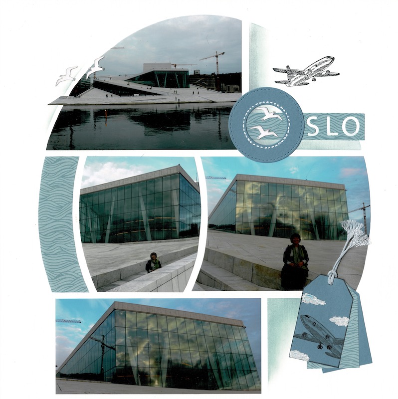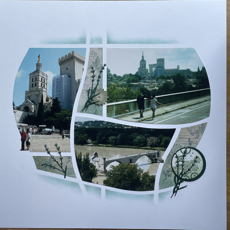 The second layout by Severine in Europe. The little ‘leaf’ allows for an extra photo or some journalling.