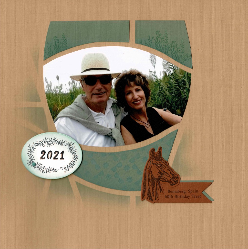 For the Golfer in the family, a stamp and die set were released this month. These could be used on a fun mini golf page or for the more serious competition pages. I created the page below using the Around the World stencil on sale this month. I used both an image off the set of stamps and a die cut in the centre of the layout and the lovely little Golf cart, also on the set of dies. I used an off-cut from one of the photos behind the Golf cart to blend with the photos and not show the gap between photos behind. Resin dots completed the decoration.