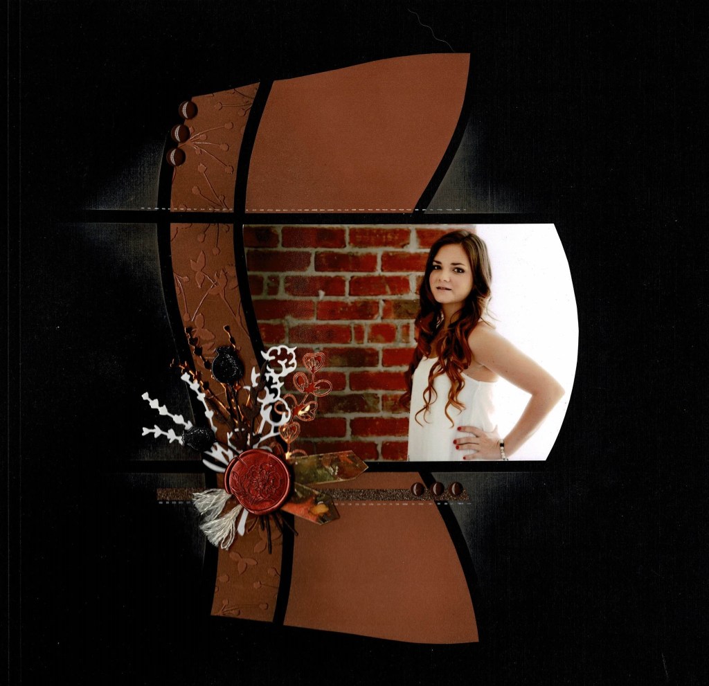 It’s not all about the new products. Here are a few layouts with Auckland and Washington for inspiration. Heather Fields created the layout below based on a model by Laurence Chubby using the AZZA Washington stencil and the Graphical Moments decoration products.