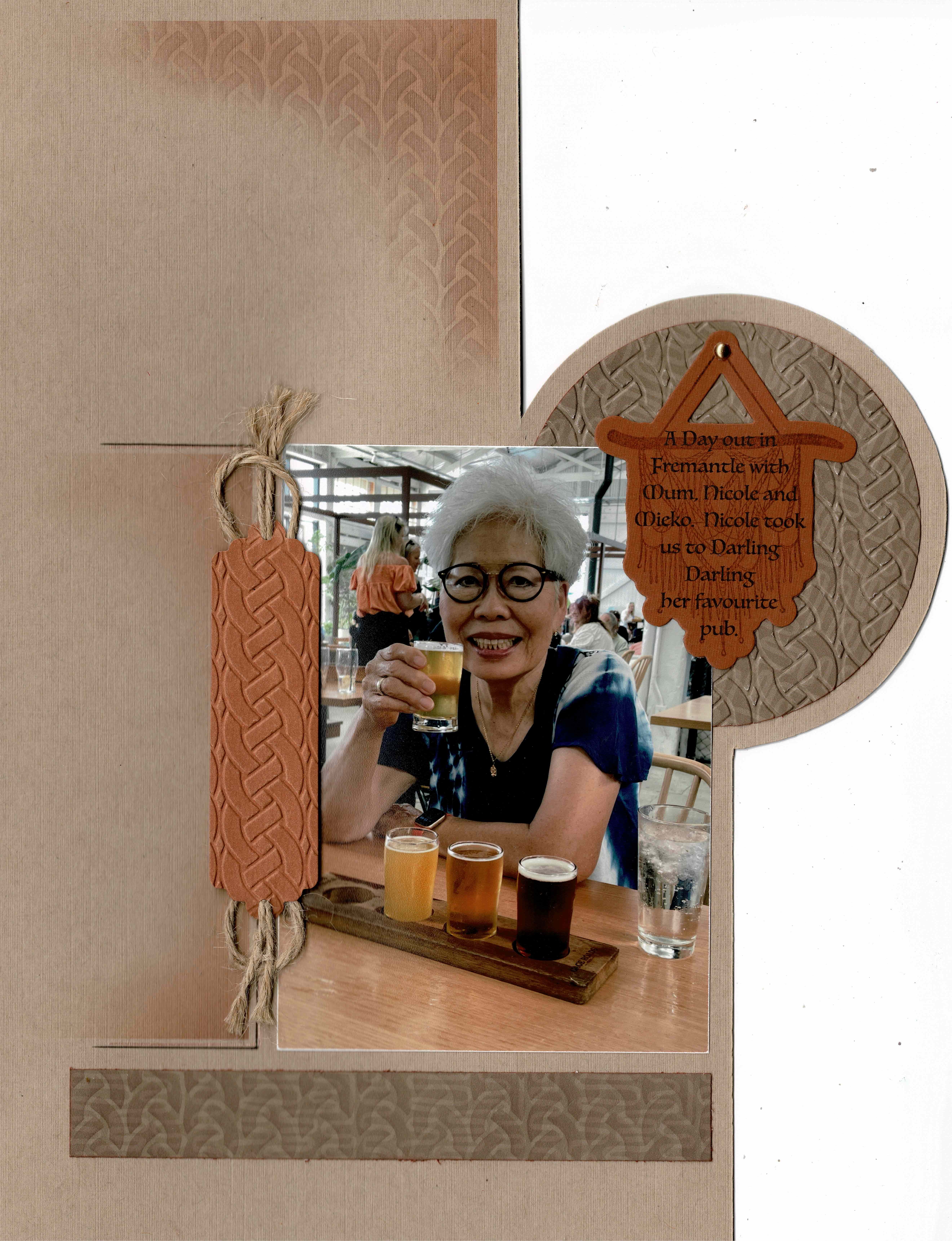 Having shown you layouts with a single photo to the lovely interactive page above, a mini album can also be created using the newly released Bangkok stencil. Instructions can be found in the latest Scrap & Moi #70 which will be on sale in Australia in March. I couldn’t upload the video but pop along to my Facebook page and you can view it there. I can’t wait to get going on one. The beautiful label dies are so versatile on all page for titles or journalling.