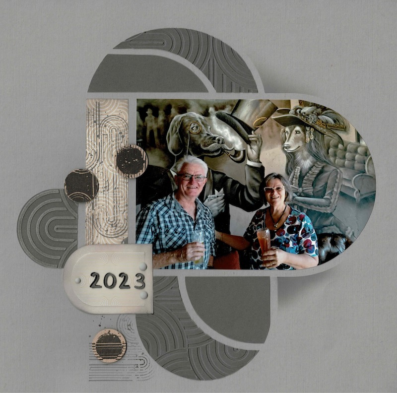 This month saw the release of the AZZA Monaco stencil and the Arches products. The first layout I completed was the layout above with a single enlargement. I used the lovely Arches embossing folder and the Arches texture stamp that will be released as part of the extra suite in June. The stencil is so easy to use, from a single photo up to a multi-page layout as seen below. This layout was created by Sue Talbot in NSW. Sue has completed her decorations with the Arches printed paper and the very versatile Filigree dies released recently.