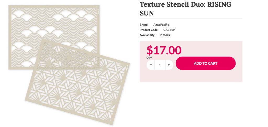 AZZA Australia is holding its annual January sale with lots of products across the range discounted. Now is the time to stock up on stencils, paper, inks and anything else you need to prepare you for the year of scrapping ahead.