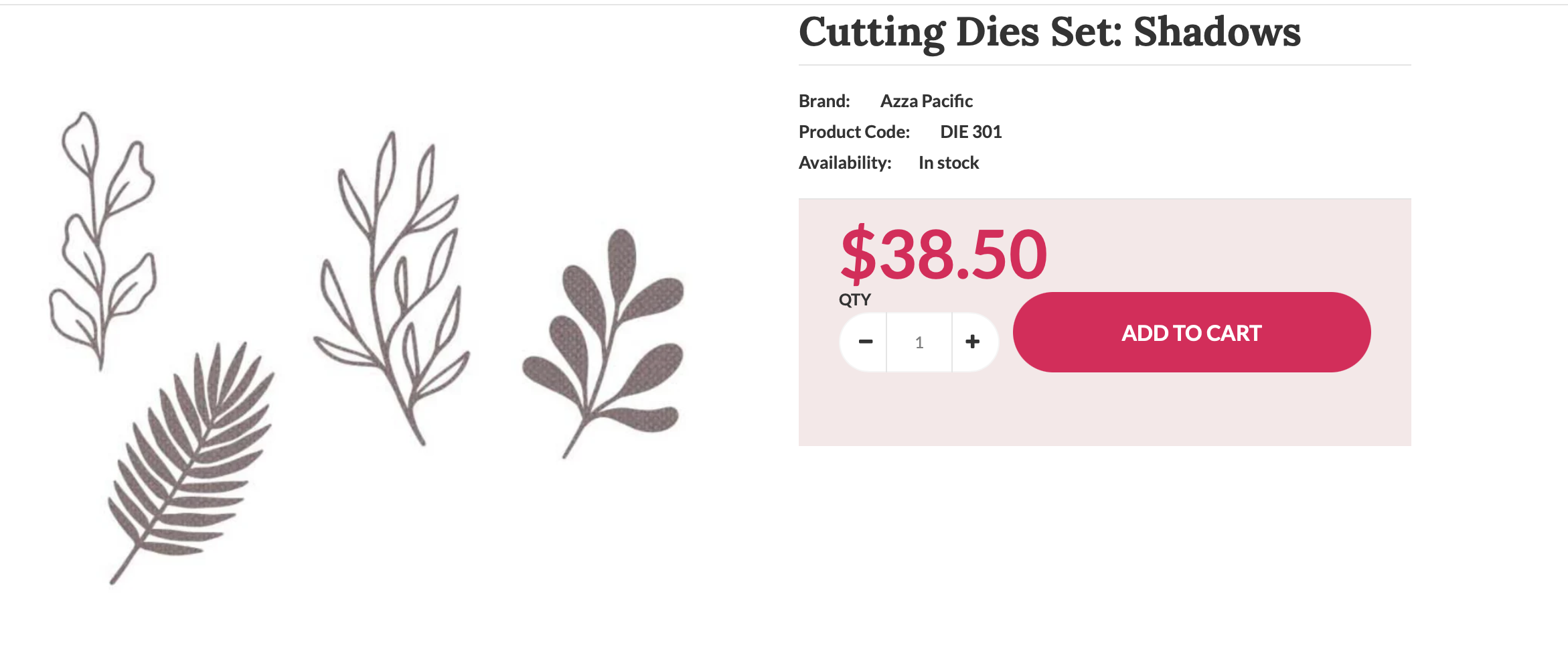 Orders over $140.00 will receive one of the AZZA large stamp sets shown above, make a note of ‘Trees’ or ‘Branches’ to indicate which set you would like sent with your order. Whilst stocks last.