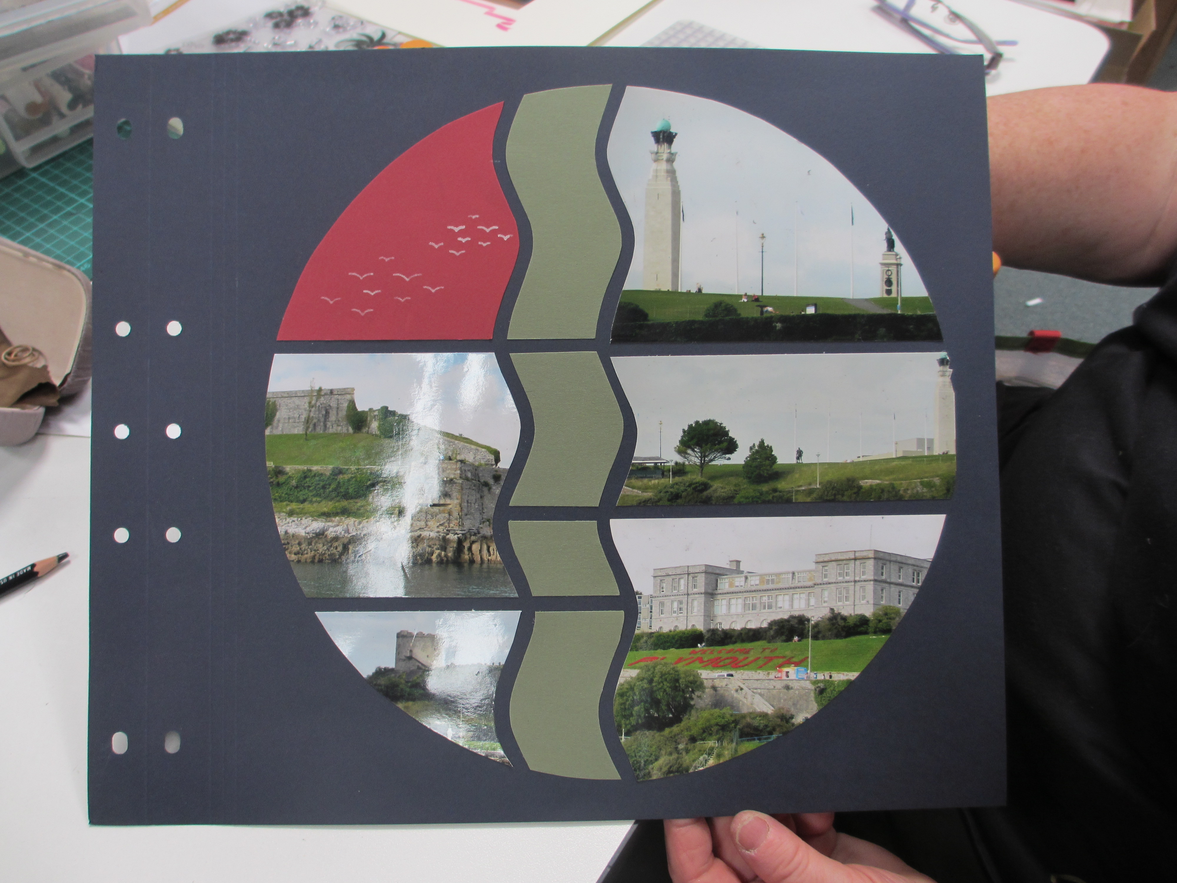 A close-up – we began with the Paris-Istanbul template in the top left-hand corner and worked to fill out the page from there. We added a few circles and an oval and finished off the canvas with sands and lace figures.