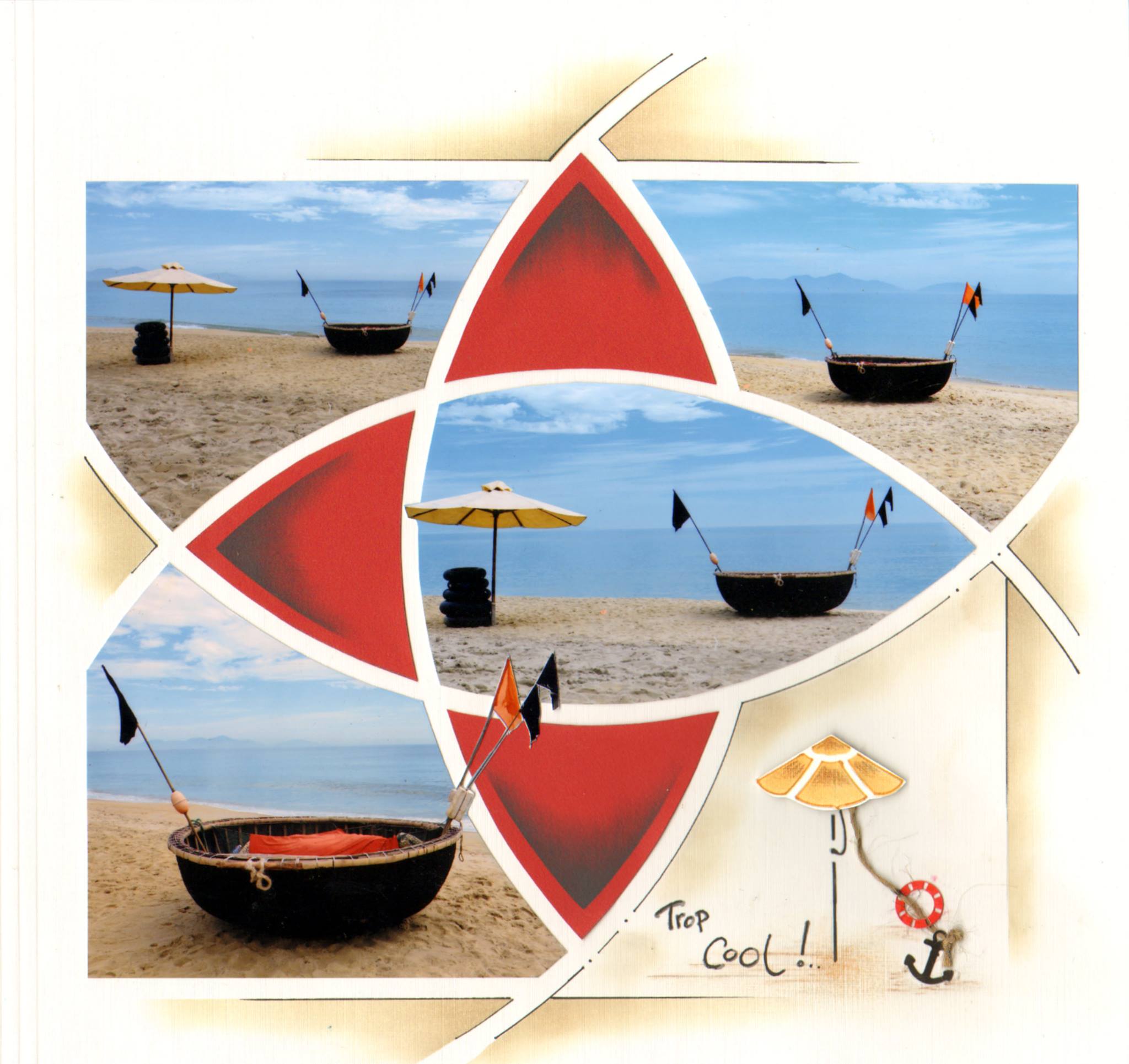A page by Martine which was a favourite in the same competition in Europe. I love it. The little boats are from a Decoration stencil no longer available.