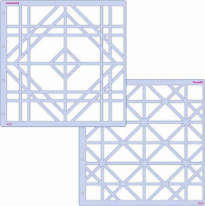 Another double page by Marielle Ecalle using a stencil which is no longer available, but can be made using the Voyage Kit – 908 or the shapes from the Complementary Duo – GAB 123