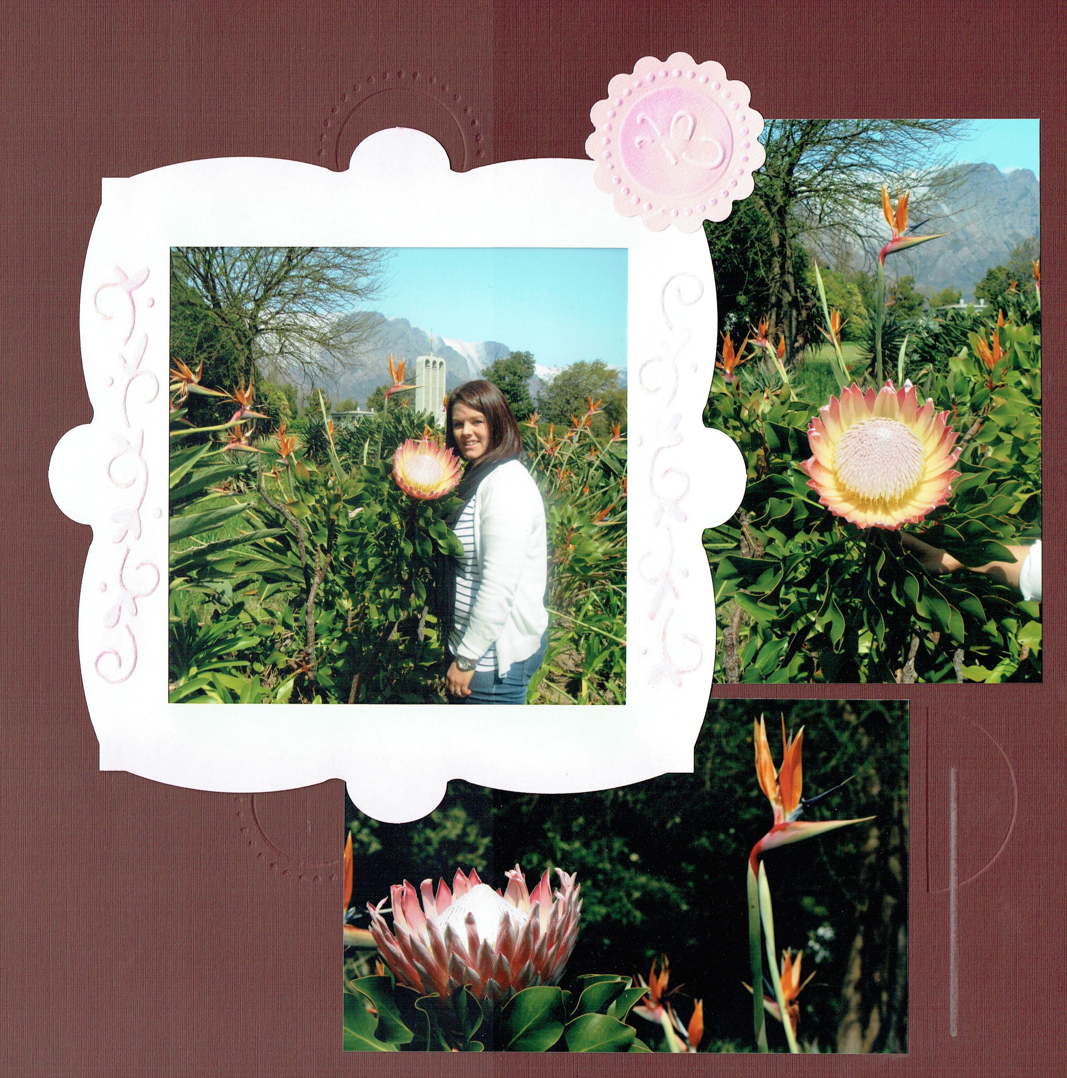I have not used any template for this page as I have used the AZZA Giant Frame ‘Feston Large’ PAP 873 to make that special photo stand out. I have used Embossing for the decoration so as not to take away from the photos. I have used the AZZA Embossing stencils, a decoration from all three: Modulo, Scrolls and Spring. You can have such fun with them, they can also be used as a stencil with inks – no embossing.
