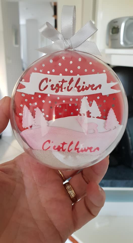 This Winter Scene when put together does fit into a Christmas Bauble as shown below.