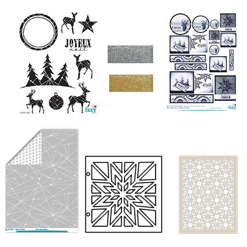 The Star basket includes the AZZA Christmas CARD stencil, the ‘Star’ AZZA Christmas stamp set, a Texture stencil, Christmas paper, A4 sketch sheet and gold and silver glitter tape. All you need to create your Christmas cards this year.