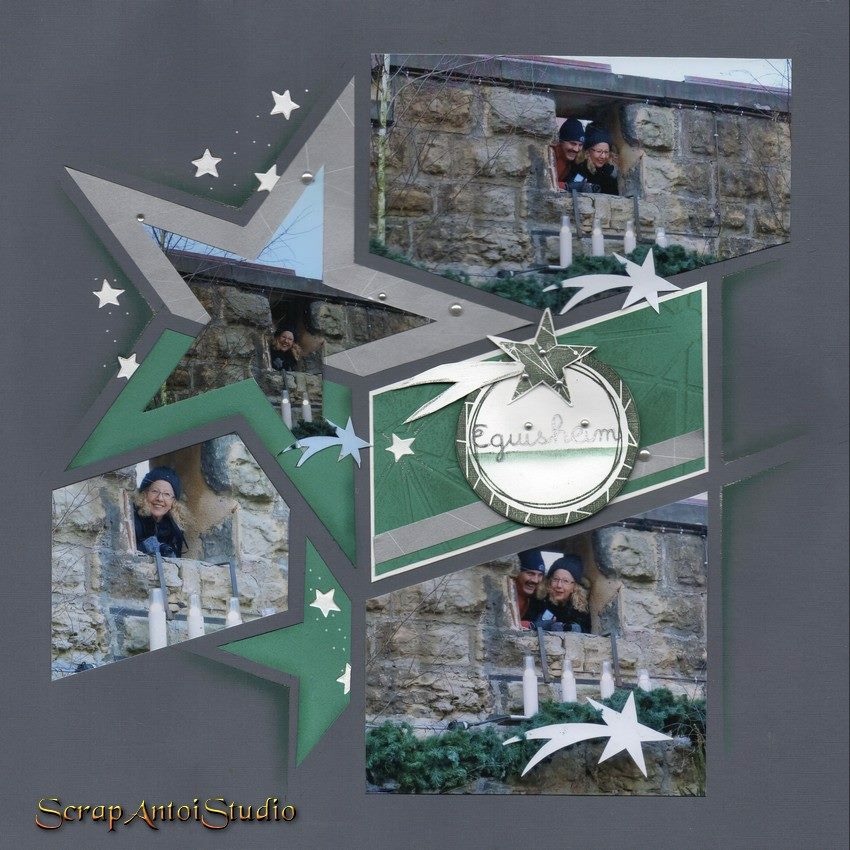 The beautiful creations posted by Laurence Chabbey show how these stamps can be used on both cards and a Scrapping page.