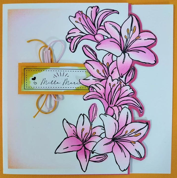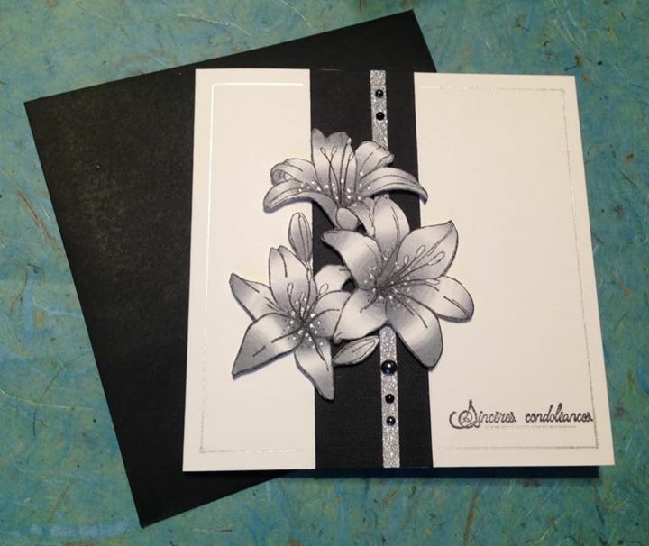 The AZZA Lilies stamp can be used for many occasions too. It can be used on a monochrome card for sad occasions or coloured brightly for celebrations: