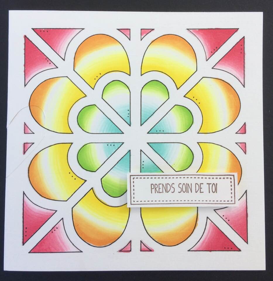 Lovely, fun-filled card created by myriad using pens to colour the card.