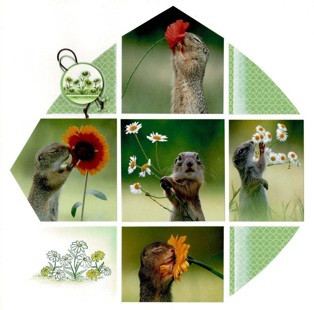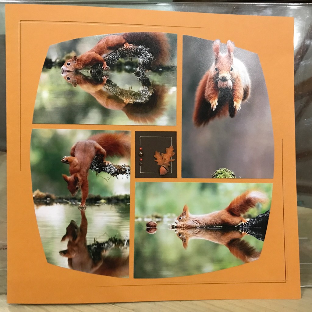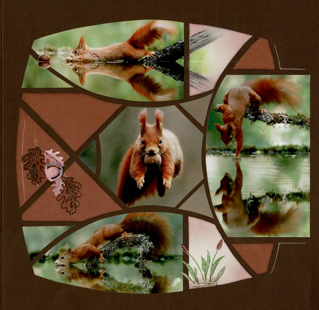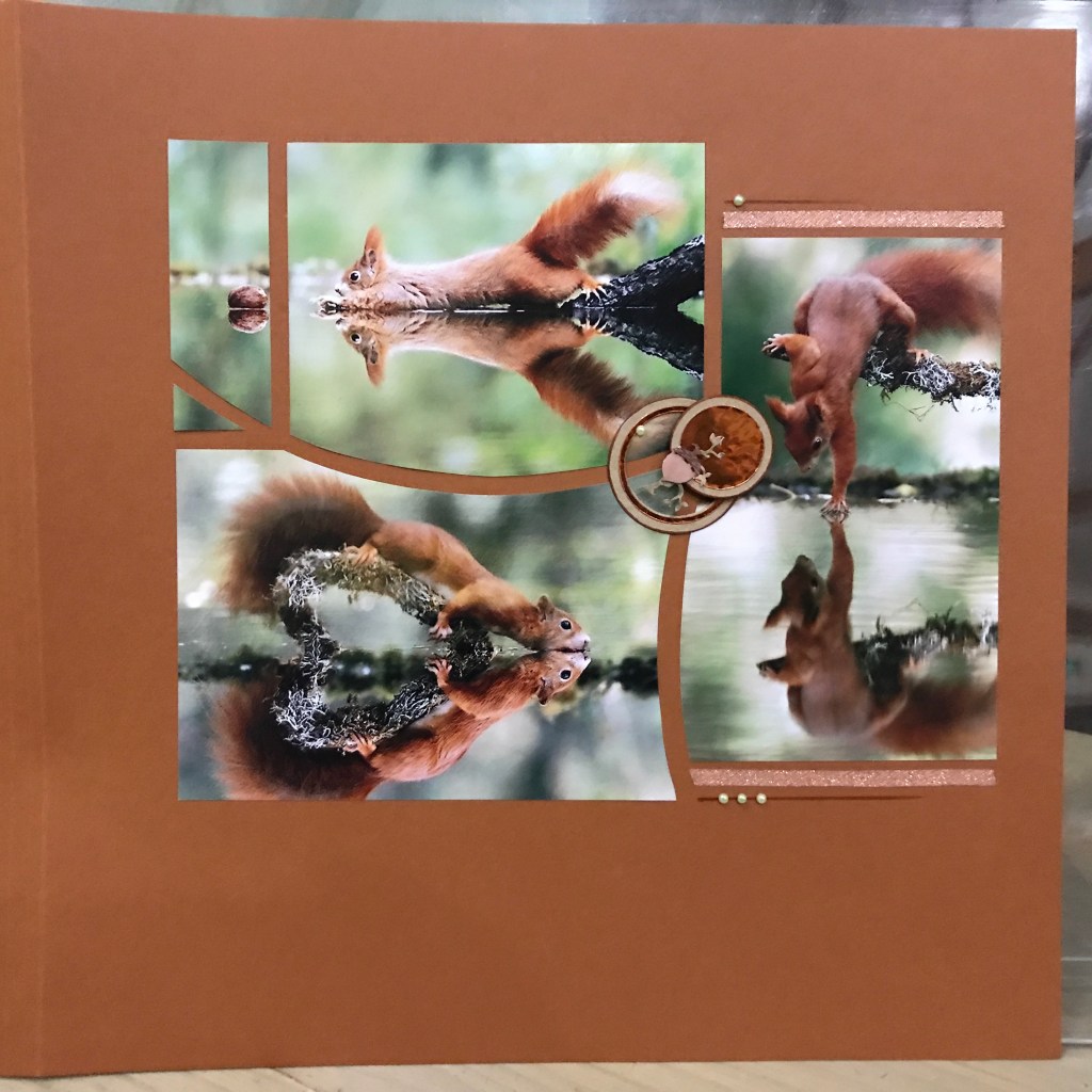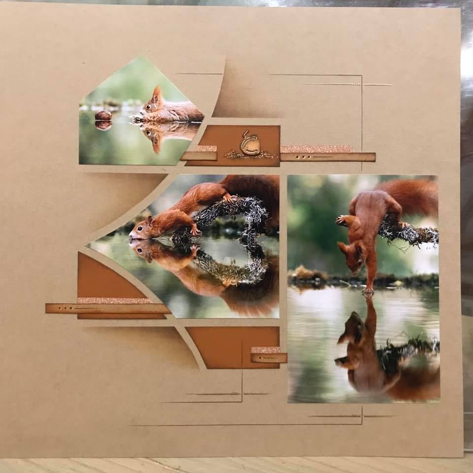 Our Consultant conference featured the AZZA Scrap Kit – Promenade, now available. All the Consultants received the same squirrel photos and were asked to make a page – we wanted to show was just how versatile AZZA stencils are.