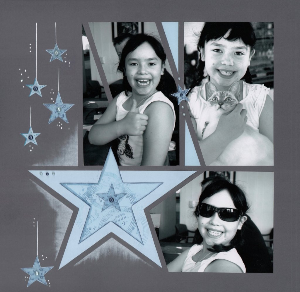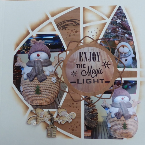 I am sure you will all have many, many Christmas photos to scrap so here are a few pages to give some ideas. The first page was created by Sabrina using AZZA Celestial stencil and Christmas stamps from last year. The chalking is beautiful.