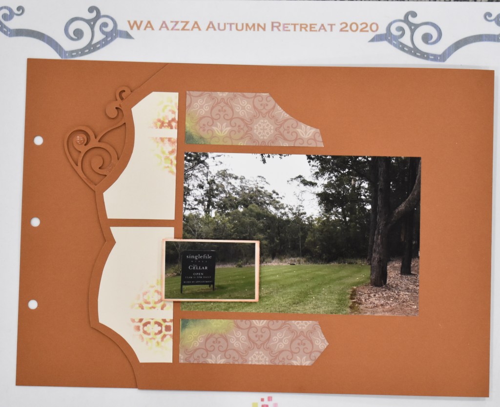On Saturday we moved on to the double page, using the beautiful Loire cutting die. This page was created by Tracy Burn. Apologies for it not being straight, the photo was taken at the Retreat.