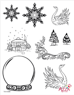 Sandy created a beautiful page showing how the Silicon pad could be used to ‘mirror image’ your stamp. Sandy used the Swan from the AZZA Frosty Lake range.