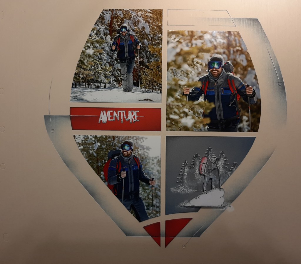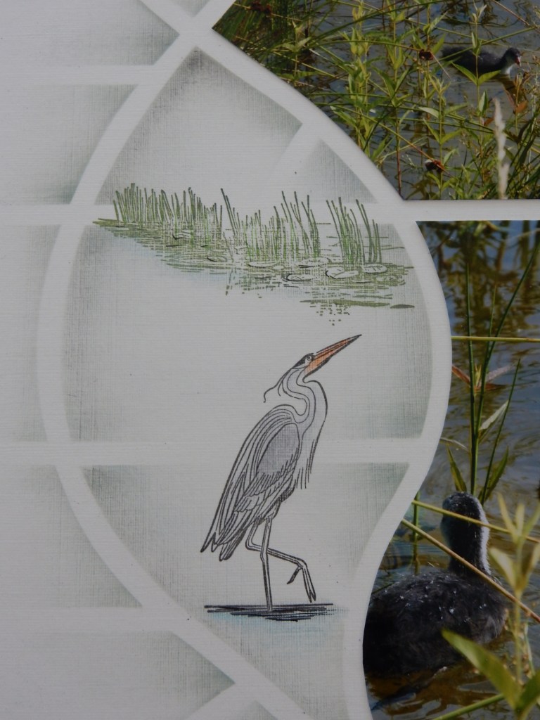 As you can see Zurich does not have to be all about the snow …. April brings a little bit of summer too. The AZZA River themed products released this month are just beautiful. Below Lauren has created a lovely double page with the Zurich stencil and the RIVER themed products. This is a double page, the front page has been cut with the shape of the stencil and the little photo of the duckling in the centre is actually on the back page, that shape has been cut out of the front page as can be seen further in the blog.