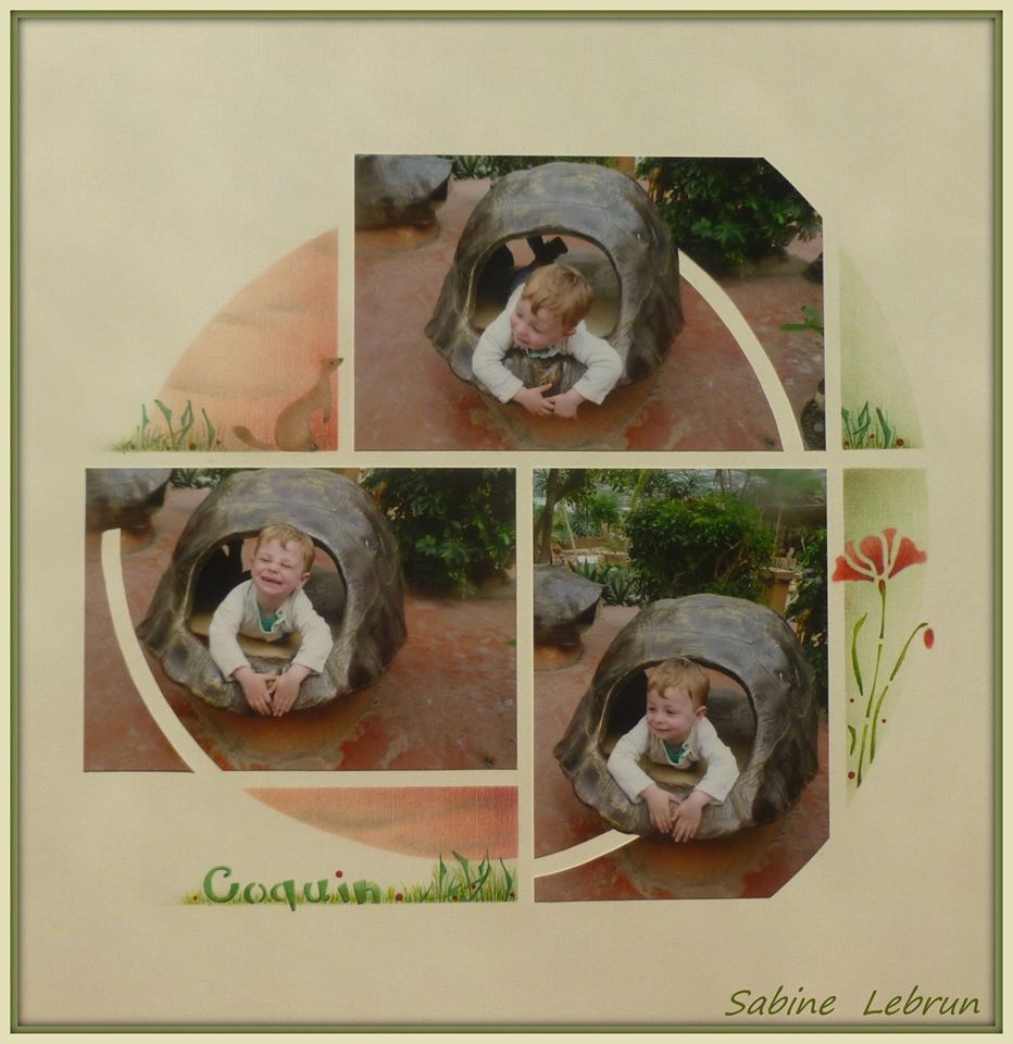 I will end with Easter. Firstly, a beautiful layout by Mimouscrap in Europe. She has used the new AZZA Zurich stencil and created a multi-page layout.