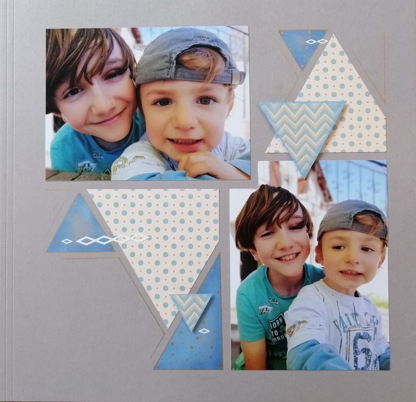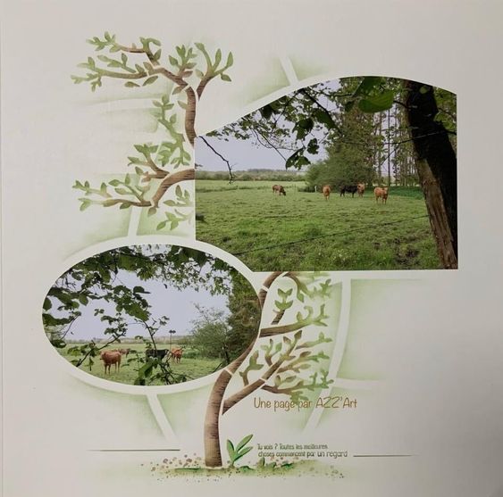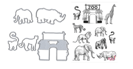 Here I have used the AZZA mid-green paper and notice how I have placed the tent behind one elephant but in front of the other. This can be done with trees or any other shapes that can be used with the theme on your page. I have used the new SAGE Alphabet die and have cut the letters out of part of a photograph I had left over. The Alphabet dies make for a quick heading on the page.