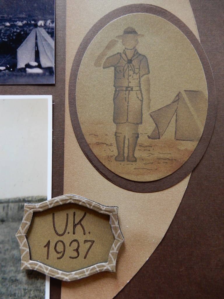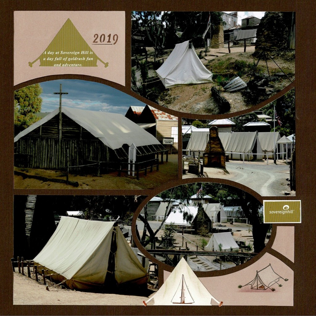 I have fallen in love with the Die set – the tent is beautiful on the page. At the top of the page above I have used it on my paper shape. The tent shape is large enough for you to place a title within it, journal or as I have done, place a little part of the the brochure from the place visited.