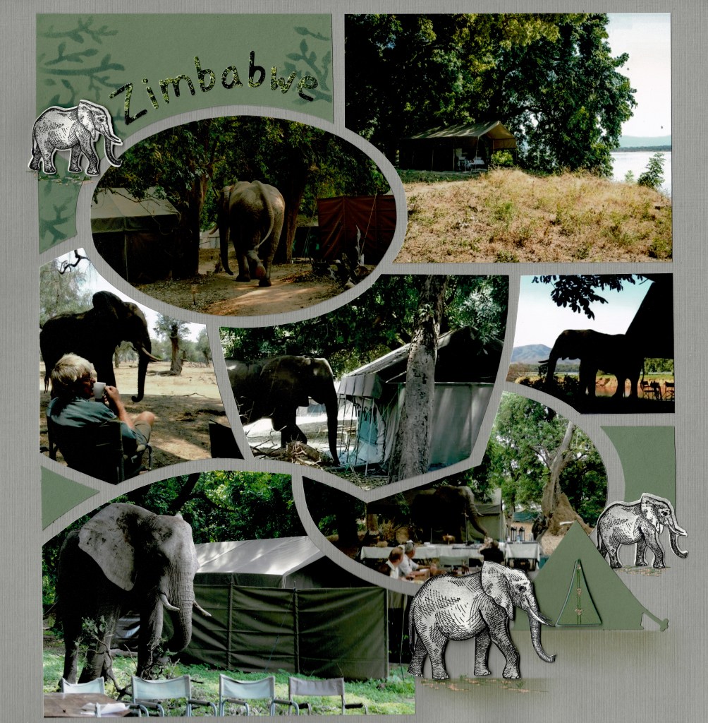 Having grown up camping in Africa I had to include this page. I have used the Punta Cana stencil for both my layouts. The majestic Elephant stamp and die set are still available.