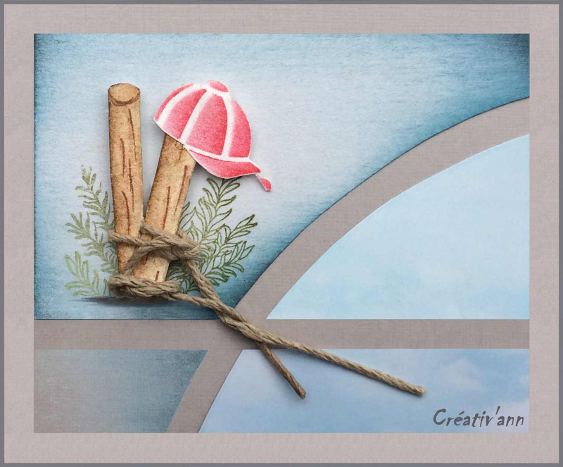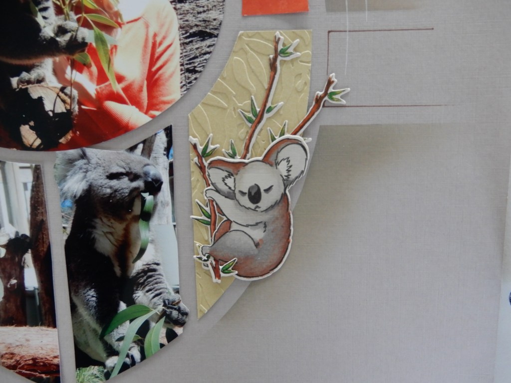 Hilary used the photos of Christine on her visit to Australia this time last year. She has used the Australian Gumnuts embossing folder and two of the newly released stamp and die sets. Note how three little branches have been used instead of just the one with the Koala.
