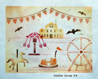 On the decoration below, the stencil has been used to turn plain paper into patterned paper.