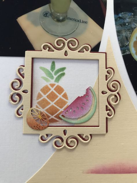 Some people don’t realise that some of the images do have extra detail on the stencil beside it, as above. The extra dots to be used with the lemon image and on the back stencil, the detail for the leaf and the pineapple. You can see I have used the pineapple with the detail, not just the outline.