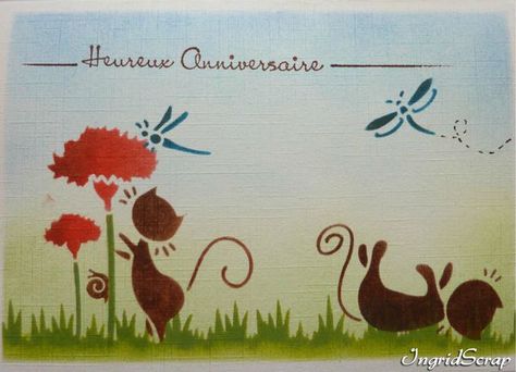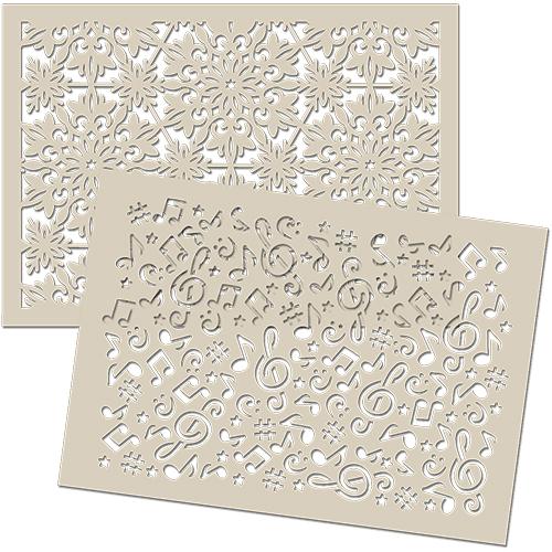 Look at this lovely card created with the Decoration stencil above, using both the outline and detail next to it. She has used the matching Texture stencil for the background.