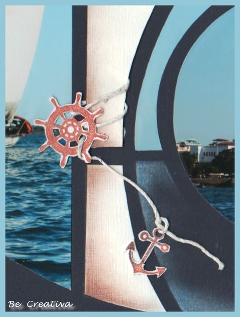 I have used the Nautical decoration stencil on my page above. I created the anchors on a separate piece of card and cut them out, threaded the cord through them then placed them onto the page with 3D foam. I used a second image as part of my heading.