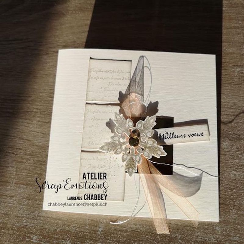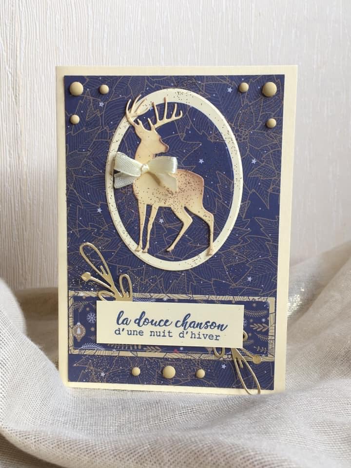 This card has been created with the new AZZA Illuminations paper, dies from the Christmas Branches cutting die shown above, Resin dots, Ribbon and a figure from the new A4 Figure sheet.