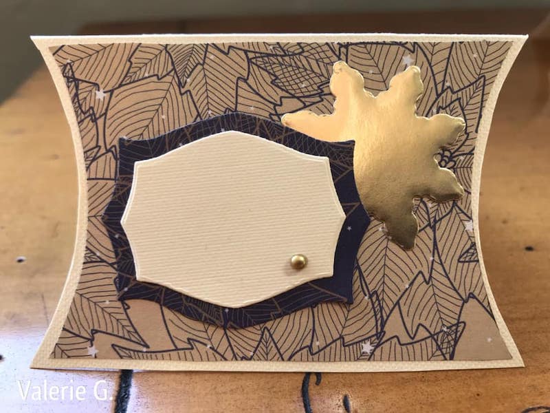 With the Festive season upon us this is a lovely idea to dress up the ‘Gift’ you may be taking along to a party. Patricia has used the AZZA Autumn products, but the Christmas products will look just as classy! Make sure you didn’t miss this set of Autumn Leaves die released last month.