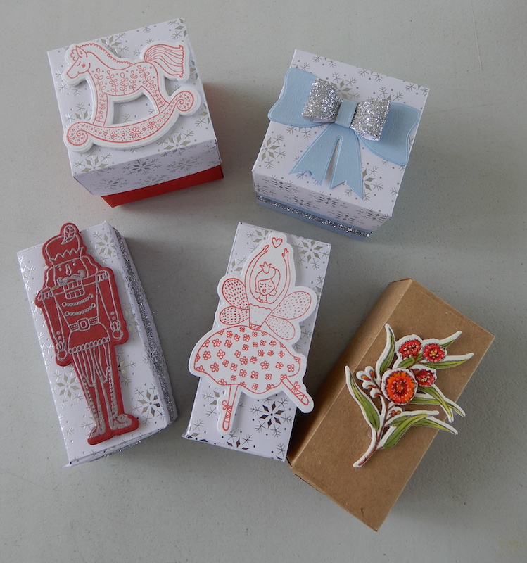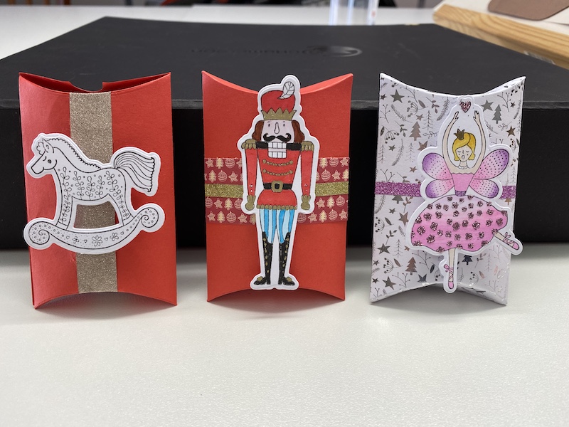 Anita has also been busy, she has used the Nutcracker Suite stamps/dies and the Cushion die for her little gift boxes: