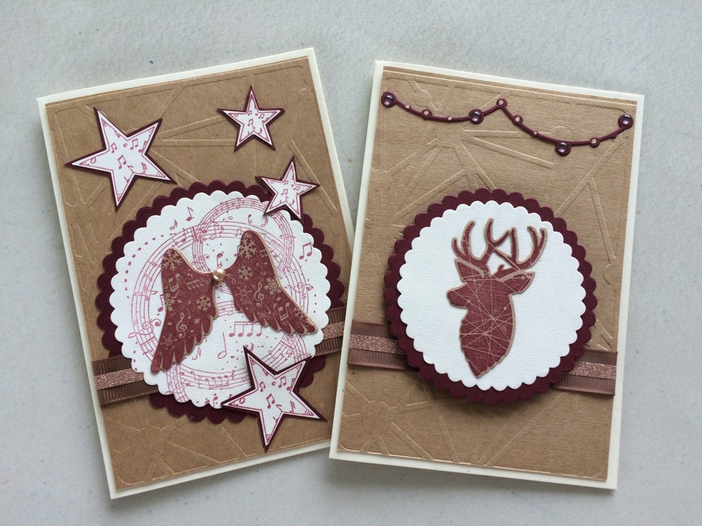 Hilary also made the cards above from AZZA Christmas products still available. She has featured the Die/Stamp sets: Silent night and the Deer Head.