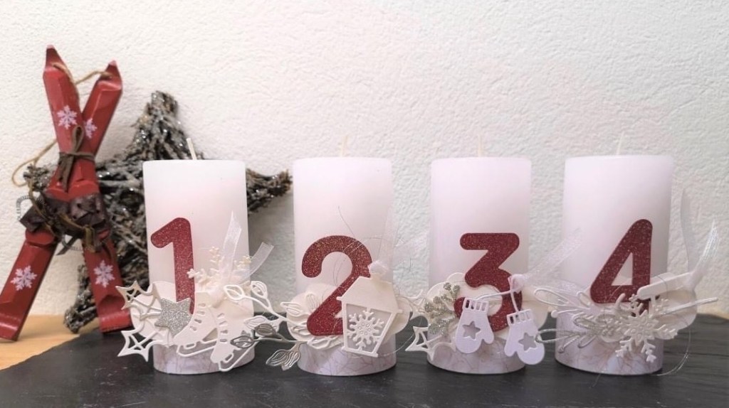 Celine has decorated her Advent candles with various AZZA dies and figures. She has used the new AZZA Number dies now available. The Alphabet dies are also available but only on Special order so do get hold of your Consultant if you are interested.