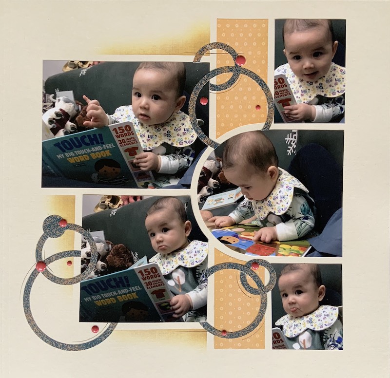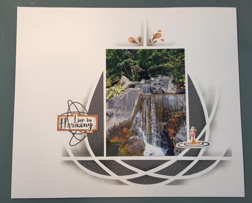 I also like this single photo layout using the Loire template and cutting die with the ‘Feather’ papers.
