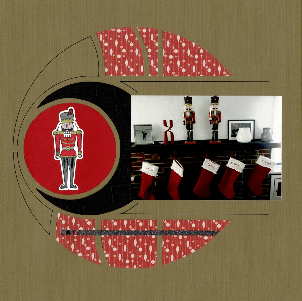 A striking page created by Judy above using the Eclipse stencil. Judy used the Nutcracker stamp and die set and the 2020 Christmas papers on the page.