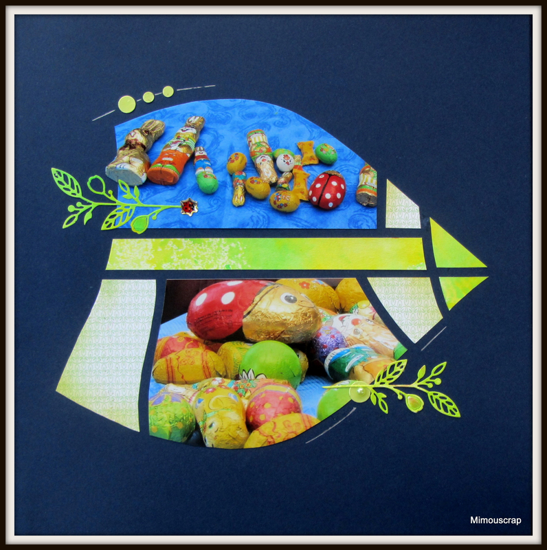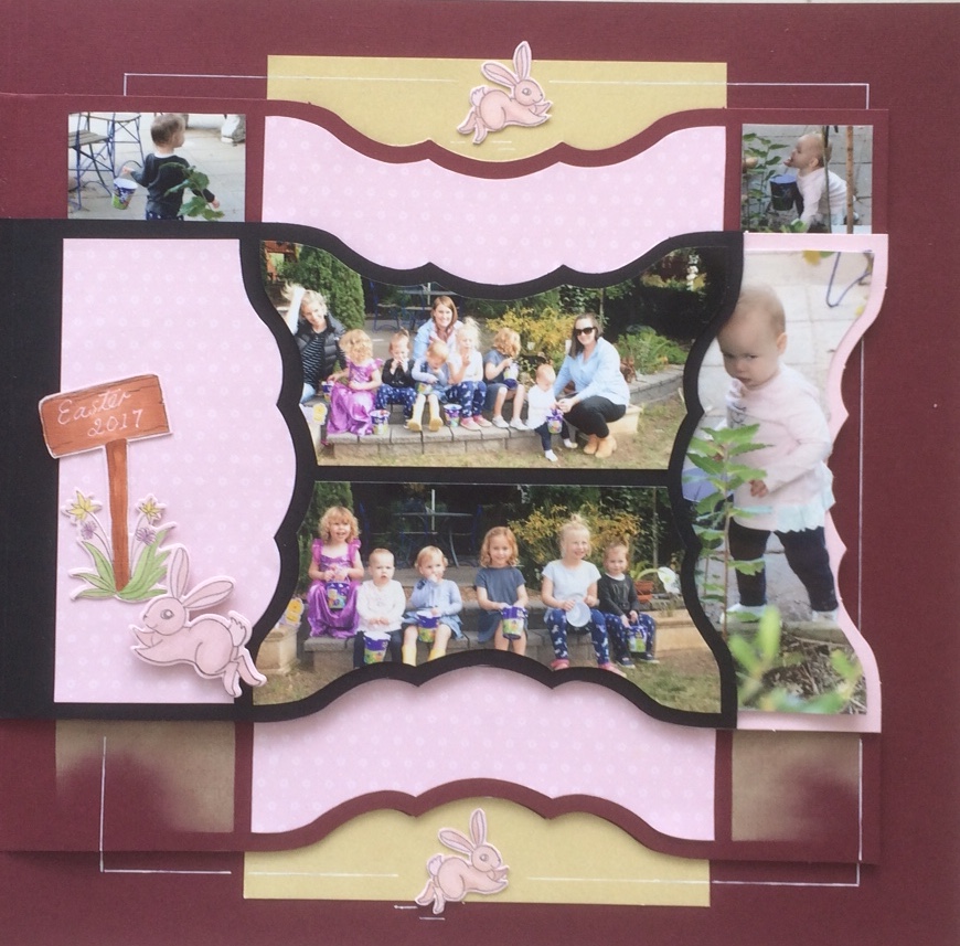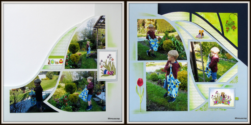 Another set of Easter pages I have shown you before, with the Zurich template. No pre-cut pages with this template but you can cut your own as with any AZZA template.